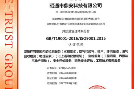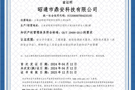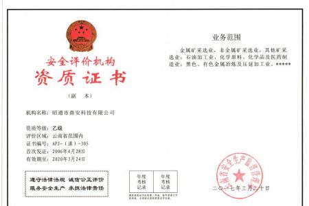 2003年11月10日,昭通市鼎安科技有限公司成立,初始主要從事第三方安全工程技術(shù)服務(wù),經(jīng)多年運(yùn)營,發(fā)展為多專業(yè)綜合科技平臺(tái),為社會(huì)提供多種專業(yè)技術(shù)服務(wù)工作。 現(xiàn)公司注冊(cè)資金為1200萬元,公司法定代表人:毛衛(wèi)旭。公司主要業(yè)務(wù):安全評(píng)價(jià)、安全標(biāo)準(zhǔn)化評(píng)審、安全工程技術(shù)服務(wù);環(huán)境監(jiān)測、職業(yè)衛(wèi)生檢測、檢驗(yàn);法律訴訟及非訴訟服務(wù);司法鑒定、固定資產(chǎn)投資項(xiàng)目節(jié)能服務(wù);工程咨詢;工程測量測繪;安全教育培訓(xùn)等。是安全生產(chǎn)服務(wù)、安全教育培訓(xùn)機(jī)構(gòu),也是環(huán)境監(jiān)測和職業(yè)衛(wèi)生服務(wù)機(jī)構(gòu),同時(shí)也是綜合的檢測檢驗(yàn)、綜合科技平臺(tái)服務(wù)機(jī)構(gòu)。多年來為公、檢、法、司、軍、警、海關(guān)、仲裁、安監(jiān)、工礦商貿(mào)企業(yè)、社會(huì)團(tuán)體及個(gè)人提供多專業(yè)技術(shù)服務(wù)。